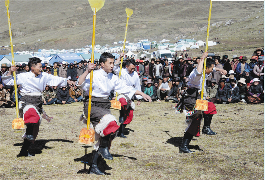 圖為理塘仙鶴藝術團表演《打墻舞》。