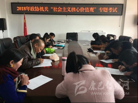 為書面測試廣大干部職工“社會主義核心價值觀”的實踐意義,11月29日下午2:00,2018年石渠縣政協(xié)機關(guān)“社會主義核心價值觀”專題考試,在縣政協(xié)黨組成員、副主席楊國華的監(jiān)考下開始。其書面閉卷筆試為:單項和多項選擇題及簡答“三嚴三實”與“社會主義核心價值觀”內(nèi)容和論述題:一是結(jié)合藏區(qū)與自己的思想實際及政協(xié)工作特點,有條理的闡述如何開展“社會主義核心價值觀”實踐活動;二是踐行“社會主義核心價值觀”的重大意義及措施、方法等。通過一小時左右的臨場測試,應(yīng)考的政協(xié)機關(guān)干部職工含臨時工、駕駛員、實習生等,人人均遞交了滿意的答卷。