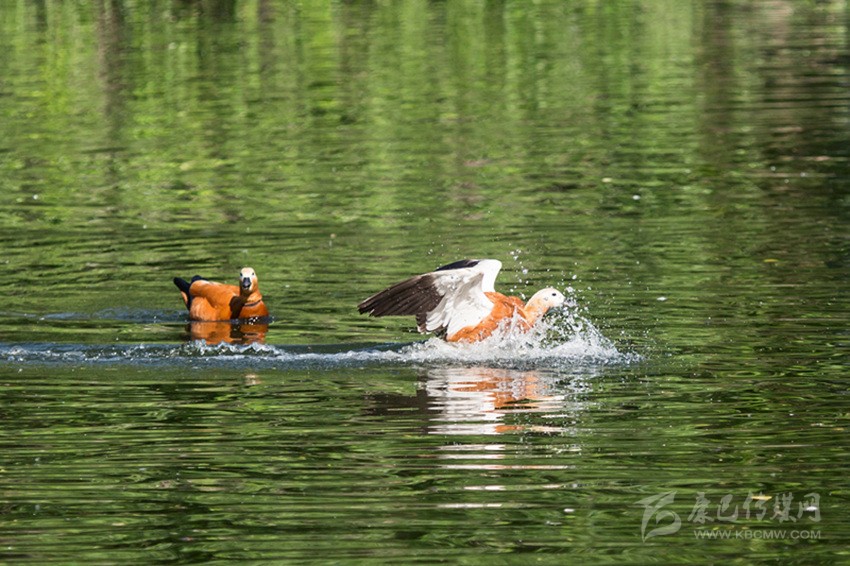 赤麻鴨嬉戲果根塘