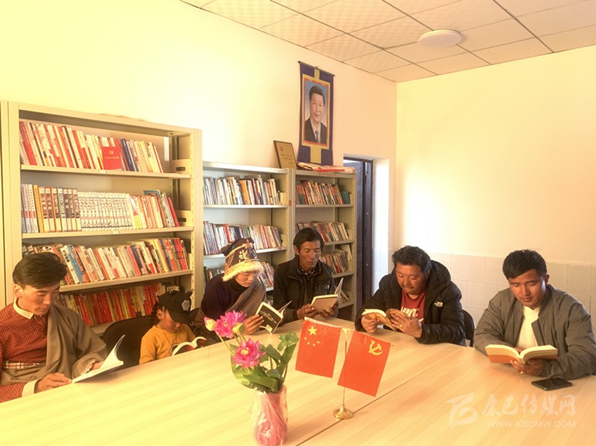 “平時只要有空,我們就到這里來聚會,看看書、聊聊天,有時村里會組織大家集中收看宣傳黨委政府政策的宣傳片,讓我們能及時了解國家方針政策?!?月13日午飯后,色達(dá)縣大則鄉(xiāng)厚門村的文化活動室,和往常一樣,又陸陸續(xù)續(xù)迎來三三兩兩的村民們。一樓的圖書室,幾位村民正在安靜地看書,有漢語的,也有藏語的,他們身后兩面的書架上,收藏了上萬本各類書籍,其中藏語書籍占了一半以上,還有一些光碟,都是歷次中央、省、州重大會議的宣講內(nèi)容。在二樓的會客室,49歲的村民擁巴和鄉(xiāng)親們正熱烈地聊著今年脫貧攻堅的形勢。