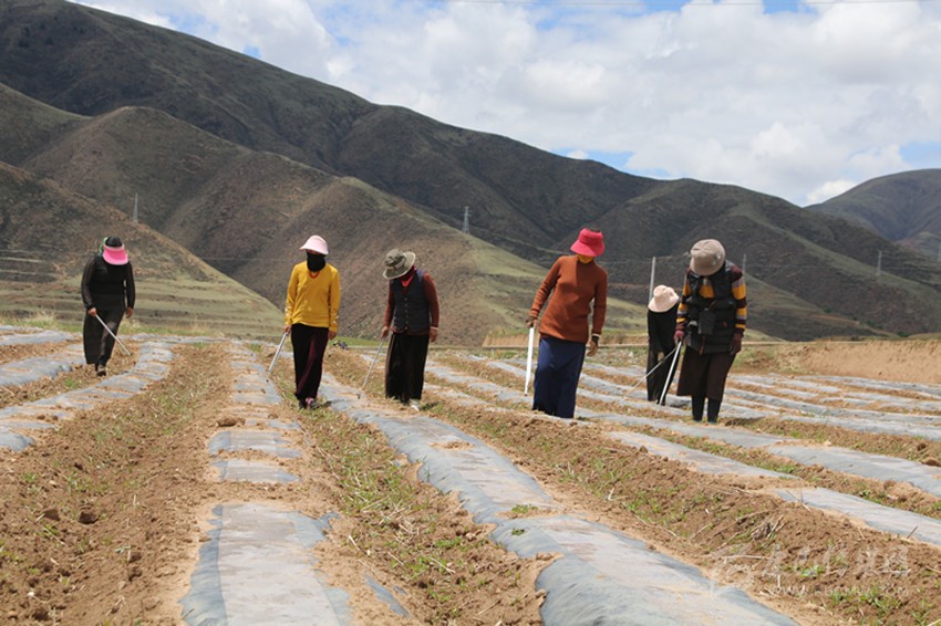“把蔬菜種植技術(shù)學(xué)精通了,我就可以回家種菜,如果產(chǎn)量拿得上去,靠賣蔬菜,一年的收入也不少?!卑赚斍湔f,外出打工太遠,照顧不到家庭,而且除了開銷一天還掙不到100元。她的丈夫澤翁降村帶著大兒子外出打工,去年3—6月就掙了2.3萬元,定布村千畝蔬菜、中藏藥材高產(chǎn)有機示范種植基地開建后,丈夫用自己的拖拉機在工地務(wù)工,一天給的工錢是500元,做了35天就掙了2萬多元。