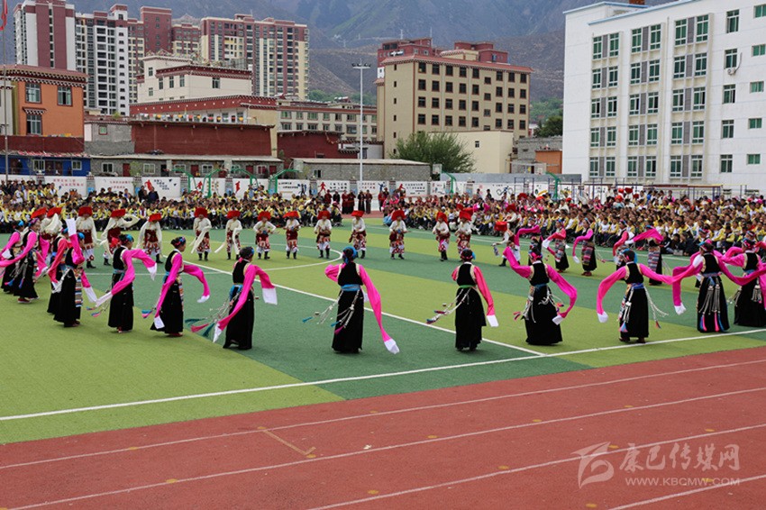 巴塘縣中學(xué)學(xué)生合唱《我和我的祖國(guó)》。