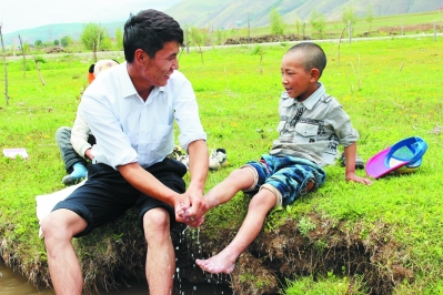 近日,筆者在仁果下鄉(xiāng)采訪時,看到一個年輕人正在給孩子洗腳。“這個孩子是你的親戚嗎?”“不是哦,他們都是我的學(xué)生,因?yàn)楹⒆犹×?,就幫他們洗腳,希望孩子從小養(yǎng)成講衛(wèi)生的好習(xí)慣。”看著筆者不解的目光,他解釋說。