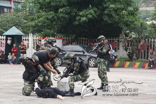近日,瀘定縣“2014反恐維穩(wěn)處突演練”在瀘定兵站舉行。 來自該縣公安、武警、消防、衛(wèi)生等部門的100余名參演人員以昂揚的斗志、精湛的技能,先后演練了盾牌術(shù)、消防滅火、反恐應急戰(zhàn)術(shù)、處置群體性突發(fā)事件等科目。此次演練,展現(xiàn)了該縣反恐維穩(wěn)隊伍堅強的戰(zhàn)斗力和優(yōu)良的精神風貌,檢驗了反恐維穩(wěn)隊伍的專業(yè)素質(zhì),全面提升了該縣處置突發(fā)事件的能力。圖為演練現(xiàn)場。(周鵬 羅楚凱 袁帥 攝影報道)