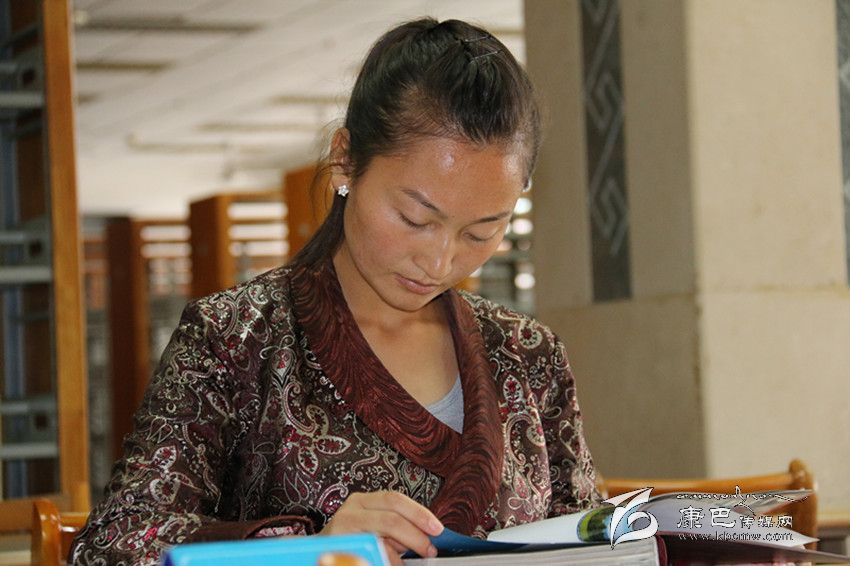 西南民大旅游管理專業(yè)學生尼瑪錯在圖書室查閱資料。