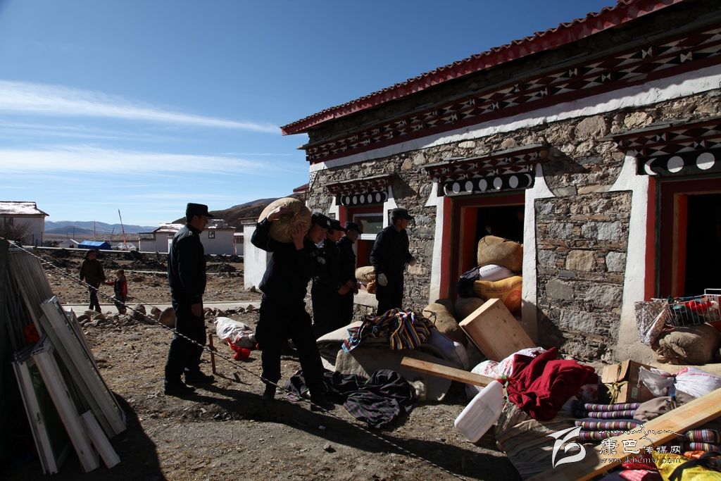 26日一大早,記者驅(qū)車趕往塔公江巴村采訪,在江巴村一戶受災(zāi)群眾家院壩內(nèi),看到了一群熟悉的聲影,他們正在幫村民巴扎轉(zhuǎn)移糧食。村民巴扎家堆放糧食的房屋外墻受地震影響裂開了幾到明顯的口子,磚瓦散落一地。主人家非常擔(dān)心房子垮了將糧食掩埋,這是他辛苦了一年的勞動成果,更是一家人過冬的口糧,正當(dāng)巴扎心焦如何將這兩千余斤糧食如何轉(zhuǎn)移到安全地帶時,他們出現(xiàn)了。當(dāng)他們了解到巴扎想盡快把糧食和其他物品轉(zhuǎn)移到安全地點時,他們二話不說,簡單分工后,馬上就忙開了。他們扛的扛、拉的拉、背的背、抬的抬……很快就將糧食以及其他零散物品轉(zhuǎn)移到巴扎家的安全地帶??吹竭@一切,一旁的巴扎對他們翹起了大拇指用很不流利的漢語說到:實在太感謝你們了,卡卓、卡卓……