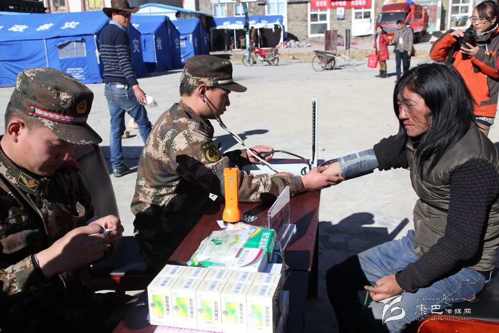“醫(yī)生,麻煩你給我一點拉肚子的藥,我肚子有點痛!”在江巴村活動室外的壩子里,記者看到一位牧民來到武警四川總隊二支隊的義診就醫(yī)點取藥,幾位軍醫(yī)正在為農(nóng)牧民看病、測血壓……軍醫(yī)陳海波告訴記者說:“震后病菌很容易滋生感冒、腹瀉等流行疾病,地震后的第二天我們就來到這里,每天都為這里的農(nóng)牧民義務看病就診,最多的時候每天有近50人來看病,今天我們就為47人進行了義診,里面有一兩個人出現(xiàn)了感冒和腹瀉的狀況。還有一些病人血壓有點高,我們都給他們開了藥,并對他們進行了叮囑,要求他們每天都進行復查。”