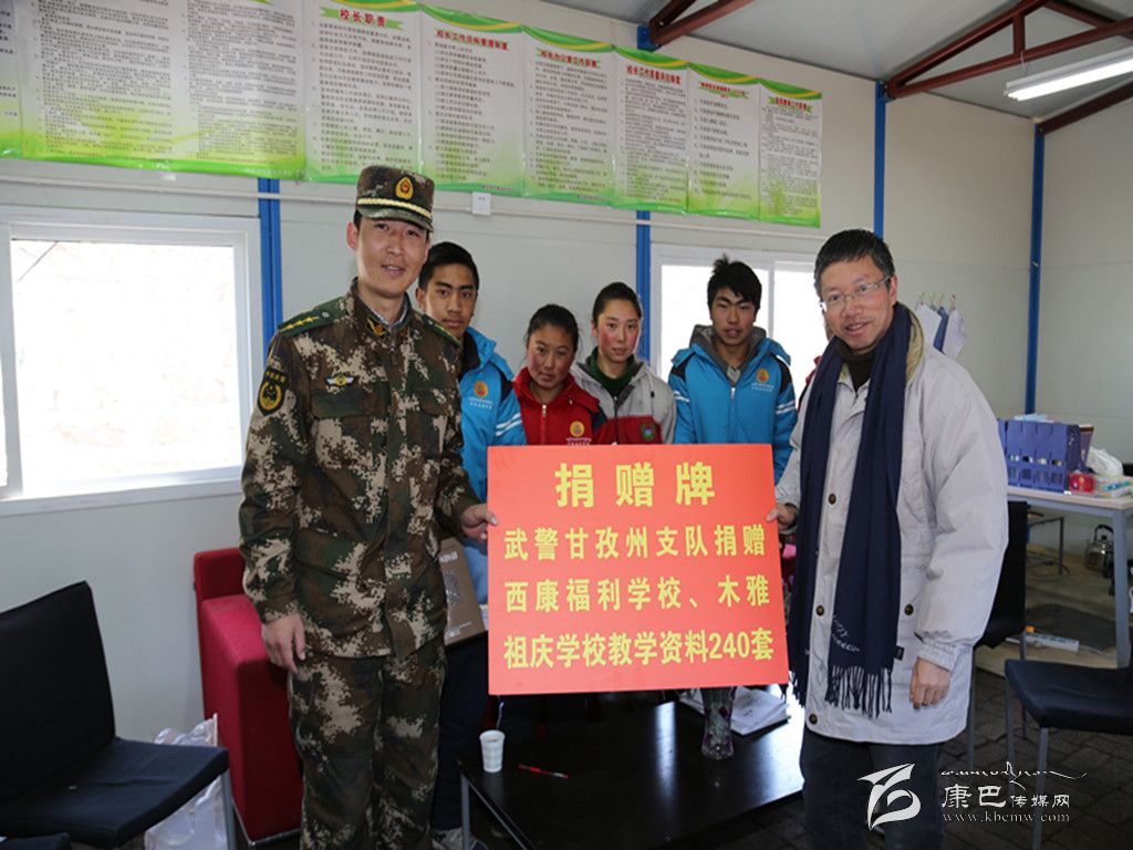 在康定縣西康福利學(xué)校、木雅祖慶學(xué)校臨時活動板房教學(xué)區(qū)校長辦公室內(nèi),該支隊向兩所學(xué)校捐贈了240套教學(xué)資料,并為5名結(jié)對特困學(xué)生贈送了保暖衣。據(jù)該支隊副政委朱平孝介紹,康定“11·22”地震發(fā)生后,他們了解到兩所學(xué)校的學(xué)生全在活動板房上課后,立即與學(xué)校取得聯(lián)系,結(jié)合實際給他們訂購了240套教學(xué)資料,用于充實學(xué)校教學(xué)。并結(jié)合部隊擔(dān)負任務(wù)和學(xué)校教學(xué)實際,將持續(xù)與學(xué)校開展愛心幫扶、國防教育、支教助學(xué)等共建共育活動。