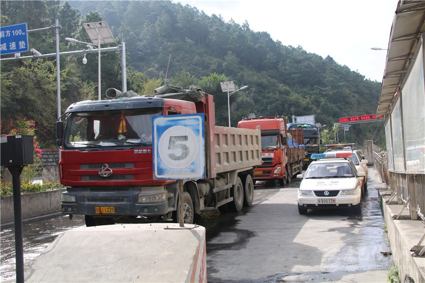 去年10月21日,全國(guó)將執(zhí)行新的貨運(yùn)車裝載標(biāo)準(zhǔn),將降低貨車運(yùn)載量。20日,瀘定檢測(cè)站迎來了大貨車運(yùn)輸高峰,當(dāng)天通過瀘定檢測(cè)站的進(jìn)州貨車就高達(dá)953輛,陡然增加的車流量,讓瀘定檢測(cè)站執(zhí)法人員忙得不可開交。凌晨1點(diǎn)左右,因距離檢測(cè)站數(shù)公里外道路正在施工,造成交通大面積擁堵。盡管不在工作職責(zé)范圍內(nèi),瀘定檢測(cè)站除值班人員留守外,交通路政、運(yùn)管、公安交警、特警全員上陣疏導(dǎo)交通?;謴?fù)通行時(shí),已經(jīng)是凌晨3點(diǎn)過。對(duì)于這樣的“家常便飯”,執(zhí)法人員已經(jīng)司空見慣?!安荒茉跈z測(cè)站周邊造成交通擁堵,這是我們的職責(zé)”。