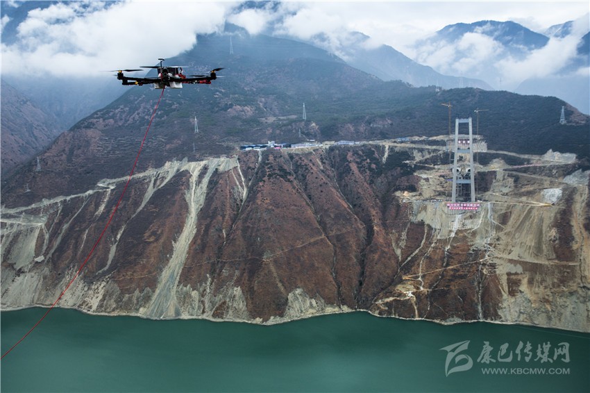 雅康高速C15合同段一分部總工程師張磊說,河谷兩岸立好橋墩,施工隊員運用無人機技術(shù),先把一根較細的繩子“飛穿”在兩側(cè)橋墩,再運用這第一根繩索,運送較粗繩索,最后運送鋼繩,建立橫跨兩岸的1600多米長的“貓道”——施工隊員屆時彎腰在這里施工?!肮と藨以诤拥郎峡帐┕?,也會被無處不在的大風所包圍?!?/span>