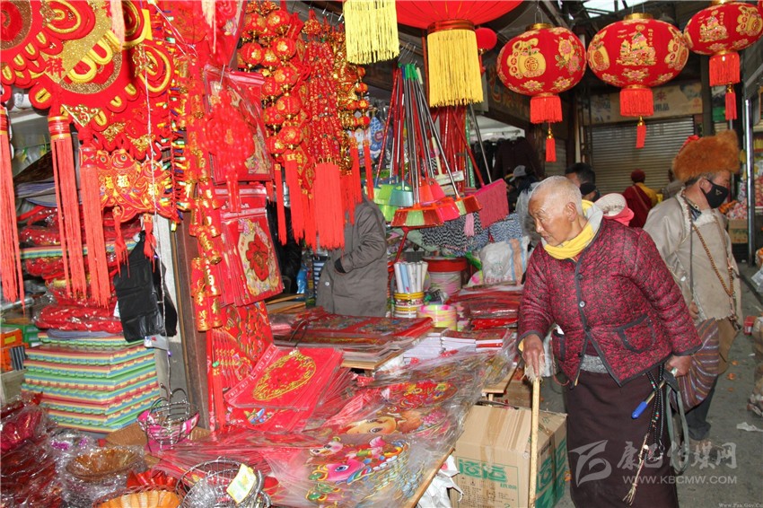 在康定市,無論是在康定民貿(mào)公司各商場、鄰里超市,還是在康定郭達(dá)農(nóng)貿(mào)市場,人們關(guān)心最多的還是年貨。“2017年是雞年,家里要掛些雞年物件,這不正在選購?!薄斑^年少不了的就是酒、煙、茶和飲料等?!闭谥棉k年貨的市民告訴記者。
