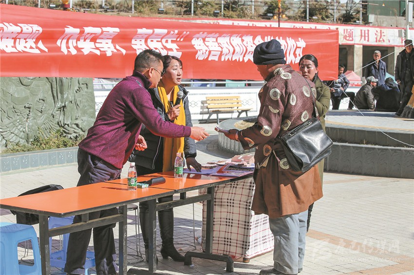 白玉縣集中開展了政策文化衛(wèi)生科技法律集中服務(wù)“五下鄉(xiāng)”活動,在嚴(yán)寒中為近2000名群眾送去了溫暖?;顒又?,由省級宣講員松吉尼瑪帶隊(duì)的政策宣講組,用通俗易懂的“土話”、民間諺語,為群眾講解了脫貧攻堅(jiān)等政策。同時(shí),新組建的縣藝術(shù)團(tuán)送上了精彩的節(jié)目。由縣人民醫(yī)院、藏醫(yī)院等單位組成的“送衛(wèi)生”服務(wù)隊(duì)開展了現(xiàn)場義診活動,免費(fèi)為群眾提供醫(yī)療服務(wù)?!八涂萍肌焙汀八头伞狈?wù)隊(duì)進(jìn)行了科普和法律服務(wù),獲得到場群眾的由衷點(diǎn)贊。