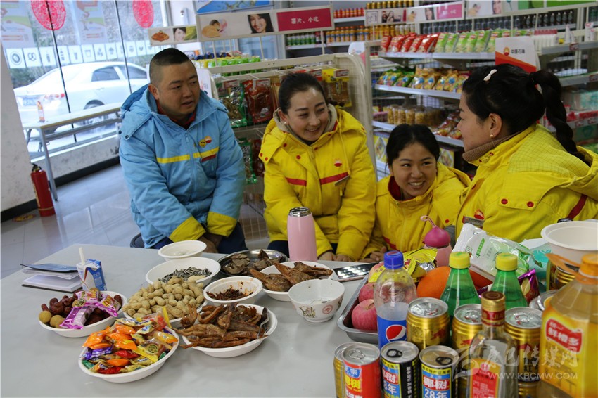 大年初一,記者看到位于康定入城口的跑馬山加油站里,過往車輛紛紛過來加油,工作人員熟練地為每一臺大小車輛加油。當記者問他們怎么沒有回家過年時,幾位年輕的女工作人員都表現出一臉的無奈。工作人員龍卡志瑪說:“我們加油站一年四季天天都是24小時輪流值班,全天候為過往車輛提供加油服務,每年都不能回家過年,大家從家里帶來一些年貨,一起在這里簡單地弄幾個菜吃,就算過年了。”