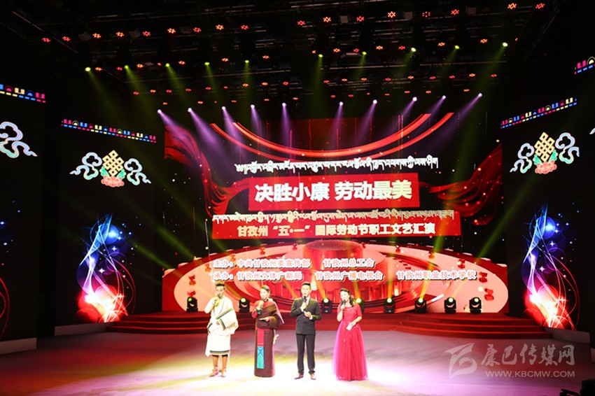 本網(wǎng)訊(記者 張嗥 文/圖)昨(27)日晚,由州委宣傳部、州總工會(huì)主辦,州文體廣新局、州電視臺(tái)、甘孜州職業(yè)技術(shù)學(xué)院承辦的“決勝小康·勞動(dòng)最美——甘孜州‘五一’國(guó)際勞動(dòng)節(jié)職工文藝匯演”在甘孜州廣播電視臺(tái)演播大廳精神上演,文藝匯演設(shè)雅康高速公路現(xiàn)場(chǎng)和瀘定縣杵泥鄉(xiāng)兩個(gè)分會(huì)場(chǎng)。州委常委、宣傳部長(zhǎng)相洛,州人大常委會(huì)副主任楊志貴,州政協(xié)副主席蔣秀英等州領(lǐng)導(dǎo)在現(xiàn)場(chǎng)觀看演出。