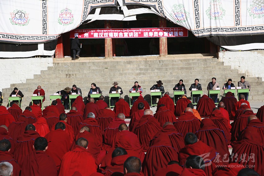 省、州藏漢雙語(yǔ)聯(lián)合宣傳團(tuán)進(jìn)寺廟開(kāi)展法治宣講。 本報(bào)資料圖