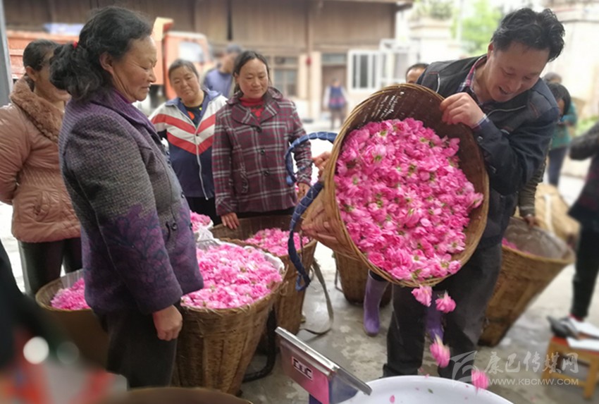 16日上午,小雨停了下來(lái),趕在太陽(yáng)出來(lái)之前采摘的玫瑰花出油率好,是采摘的黃金時(shí)間。在燕子溝鎮(zhèn)新龍門(mén)子村生產(chǎn)加工點(diǎn),周邊農(nóng)戶(hù)將采摘的粉色玫瑰花瓣過(guò)秤,逐筐倒進(jìn)特定的堆放地點(diǎn),農(nóng)戶(hù)們也收到了應(yīng)得的勞務(wù)收入,空氣中彌漫著一股玫瑰花特有的芳香和浪漫,也充滿(mǎn)了當(dāng)?shù)匕傩招腋:吞鹈鄣奈兜馈?/span>
