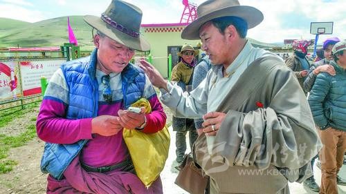 記者在色須鎮(zhèn)宣講現(xiàn)場看到,宣講尚未開始,來自該鎮(zhèn)各村、各蟲草采挖點(diǎn)的群眾便早早地聚集到鎮(zhèn)政府院內(nèi),村民們穿著美麗而傳統(tǒng)的藏裝,在該鎮(zhèn)工作人員的組織下整齊地坐在宣講臺前,靜靜等待宣講團(tuán)成員的到來。