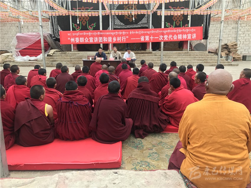 為讓廣大僧人知曉省黨代會的主要精神,堅定踐行愛國愛教、知法守法、正信正行、同心同向的理念,26日上午,州委宣講團走進理塘縣長青春科爾寺為該寺僧人宣講省黨代會精神,該寺格西、堪布、寺廟管委會成員及僧人共同聆聽了宣講。