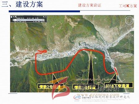 何以解憂?唯有改線。“避開原線,從旁邊的跑馬山中,打出一條隧道來(lái)。”該院隧道與地下工程分院院長(zhǎng)林國(guó)進(jìn)告訴記者,他們最終確定,隧道的出入口選在康定的新城和老城之間。這樣一來(lái),康定縣城東面將新增一條過(guò)境通道,過(guò)境車輛只需鉆隧道,無(wú)需進(jìn)城“添堵”;二來(lái),隧道出口與城市規(guī)劃道路連接,也兼顧了康定本地車輛往返成都的需求。