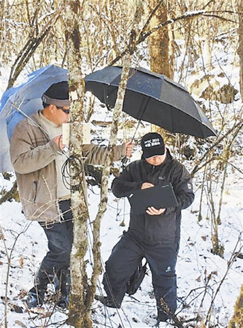 科研人員在貢嘎山進(jìn)行戶外數(shù)據(jù)采集。