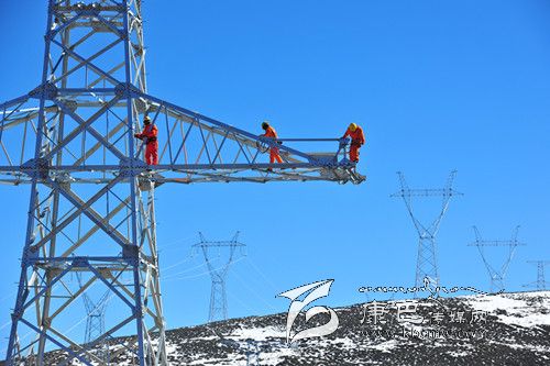 電力天路川藏聯(lián)網(wǎng)工程特別報道 11月中旬,寒風(fēng)凜冽,滴水成冰。為確保我州“電力天路”無電地區(qū)和農(nóng)網(wǎng)改造建設(shè)工程明年3月份按時完工 ,四川電力公司的各路建設(shè)者,依舊保持 著旺盛的工作斗志,吃住在各施工現(xiàn)場,奮戰(zhàn)在高寒缺氧地域。圖為11月12日,電力員工奮戰(zhàn)在雅江縣境內(nèi)海拔 4412米的施工地段,登塔作業(yè)。 (楊林 攝影報道)