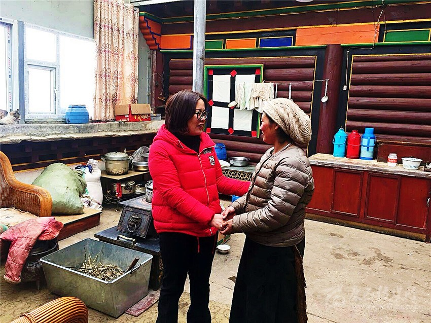“謝謝阿姐,我會(huì)努力讓村子干凈整潔。”洛若鎮(zhèn)曲西村噶瑪吉手提著洛絨卓瑪為她買的一大包護(hù)膚品、香皂等,笑容燦爛。曲西村是洛絨卓瑪定點(diǎn)聯(lián)系貧困村,全村沒(méi)有一棵樹,通村道路還是機(jī)耕道,不通電、不通網(wǎng),無(wú)安全飲水取水點(diǎn),21戶無(wú)房戶急需新建,16戶危房戶急需維修……針對(duì)該村存在的實(shí)際困難,洛絨卓瑪立即組織相關(guān)部門召開現(xiàn)場(chǎng)辦公會(huì)解決農(nóng)牧民用水用電、通網(wǎng)和道路硬化等具體問(wèn)題,協(xié)調(diào)幫扶資金規(guī)劃全村產(chǎn)業(yè)發(fā)展項(xiàng)目。由于經(jīng)常到村里調(diào)研,村里的每位群眾都和她成了熟人。