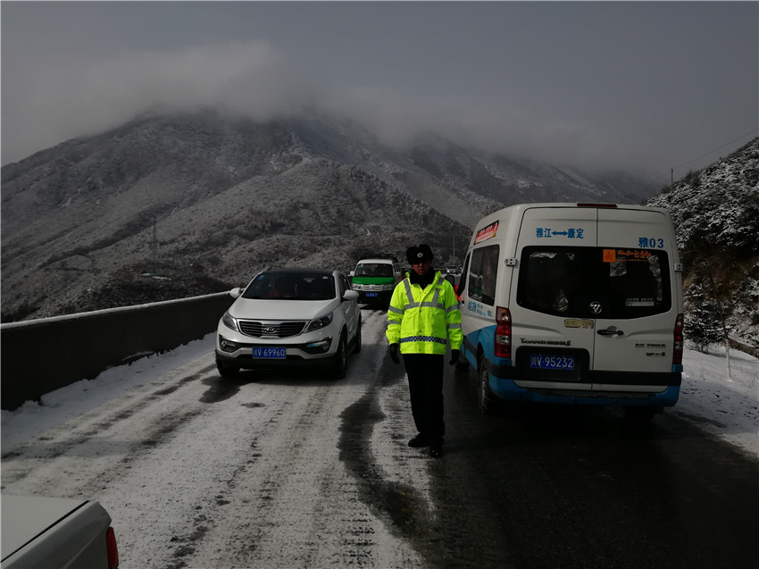 王洛讓和同事是看老天爺“臉色”工作,老天爺一“變臉”,就是王洛讓和同事最忙碌的時(shí)候。2013年9月,折多山下了一天一夜的雪,積雪深至膝蓋,道路中斷無(wú)法通行。為了除雪搶險(xiǎn)和疏導(dǎo)交通,王洛讓和同事們?cè)谡鄱嗌缴媳甲?天3夜,在冰冷的雪地上幫助過(guò)往司機(jī)掛防滑鏈、攙扶有高原反應(yīng)的游客、為堵車的駕駛員送上熱水,免費(fèi)為游客提供高原應(yīng)急藥品。