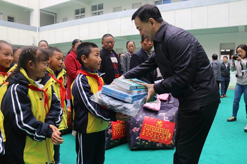 當(dāng)天上午,“粵企代表為藏區(qū)困難群眾、貧困學(xué)生和留守兒童捐贈(zèng)物資發(fā)放儀式”在康定市實(shí)驗(yàn)小學(xué)舉行,廣東企業(yè)代表向該校20名留守兒童和困難學(xué)生發(fā)放了包括玩具、書包、圖書在內(nèi)的節(jié)日禮物,向康定市的30戶家庭困難的群眾發(fā)放了棉被、洗漱包、保溫杯等慰問品。