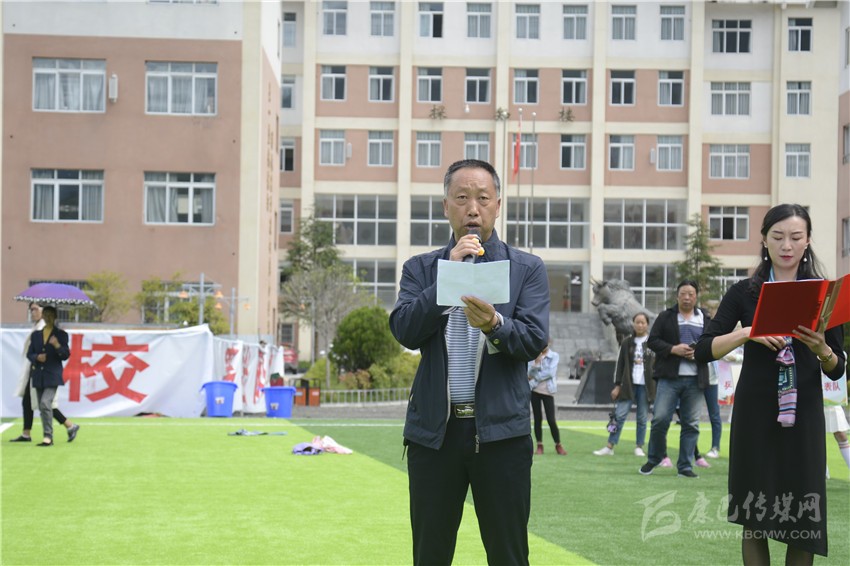 裁判長(zhǎng)——四川民族學(xué)院體育學(xué)院黨總支書記陽源宣布成績(jī)。