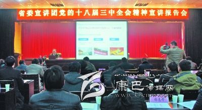 12月25日,省委宣講團在海螺溝景區(qū)宣講黨的十八屆三中全會精神,由省委講師團教授韓旭作宣講,海螺溝景區(qū)景區(qū)管理局、磨西鎮(zhèn)、新興鄉(xiāng)副科實職以上干部,21個行政村村兩委班子成員,部份州、縣人大政協(xié)代表,離退休同志代表和三老干部代表,省州屬各派駐機構負責人以及部分旅游企業(yè)負責人聆聽了報告。圖為報告會現場。(李娟 攝影報道)