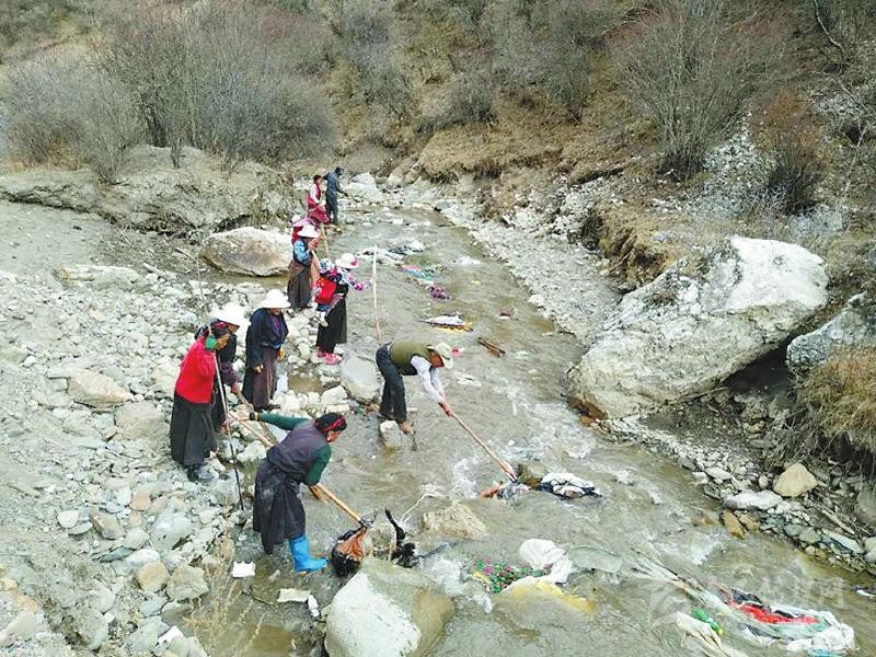 說干就干,黃先明帶領(lǐng)駐村工作隊隊員和村兩委班子成員不畏嚴(yán)寒,首先把全村的道路、公共設(shè)施場地進(jìn)行了清掃,把道路兩邊的小土堆全部鏟平并種上花草,把村民房前屋后的柴火、廢料等重新清理并制定擺放標(biāo)準(zhǔn)。在河道整治中,黃先明帶領(lǐng)村干部沖在前面,對不容易清理到的垃圾,還跳到河里去撿。3月的高原還很冷,鞋子很快被交納河水打濕,但大家全然不顧。“黃隊長都帶頭干,我們更要努力。”交納村村民巴登鄧珠說。