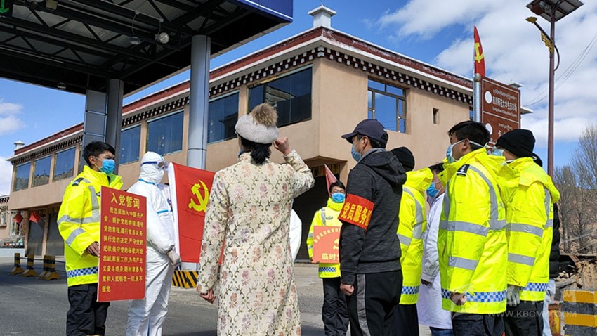 “我志愿加入中國(guó)共產(chǎn)黨,擁護(hù)黨的綱領(lǐng),遵守黨的章程……”2月1日,在海拔4200米的理塘縣禾尼檢疫站,醫(yī)生、民警中的共產(chǎn)黨員們重溫入黨誓詞,表達(dá)誓死戰(zhàn)勝新型肺炎疫情的決心。