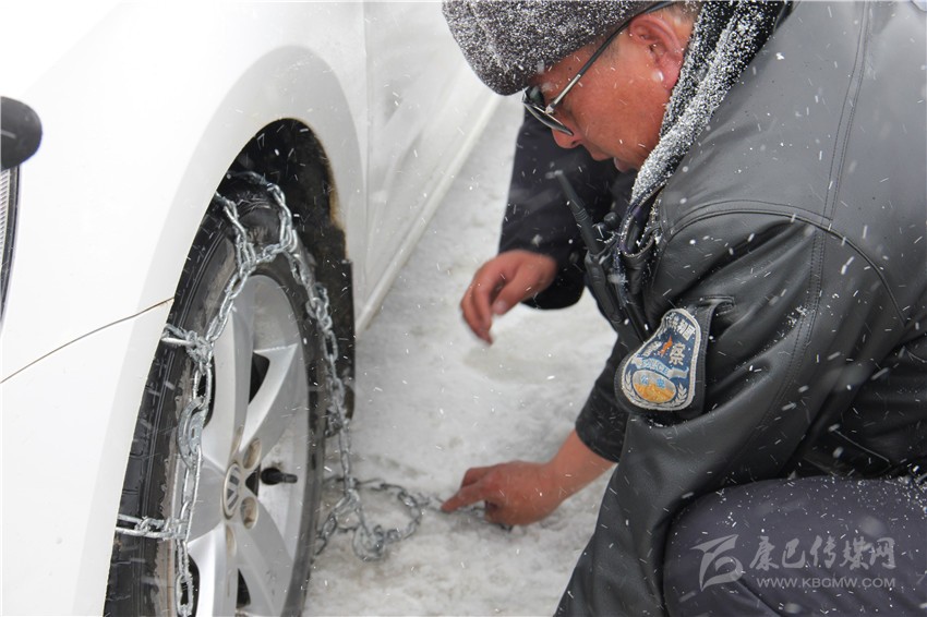 王洛讓在折多山幫助司機(jī)掛鏈條。