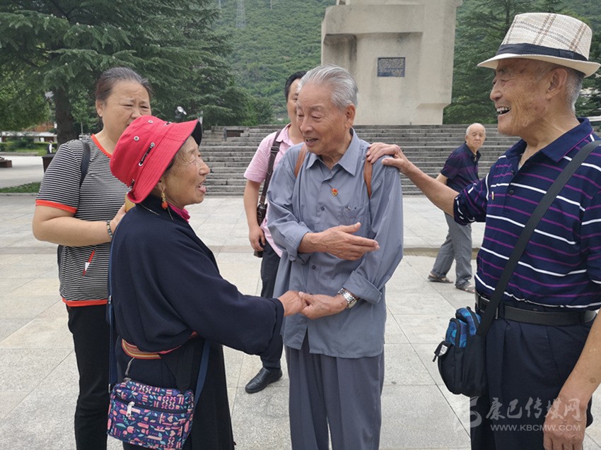 “哎呦,聶校長,我們快40年沒有見面了吧,沒想到在這里碰到了,您瘦了,白頭發(fā)增多了,其他沒變,還是像我的父親一樣,您一定要保重身體,我祝福您長命百歲?!痹跒o定橋廣場上,今年60余歲,雅江籍退休人員劉桂英緊緊握住離休干部聶庭梅的手,激動不已。