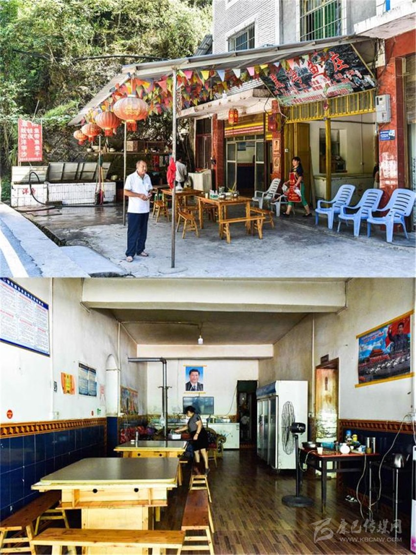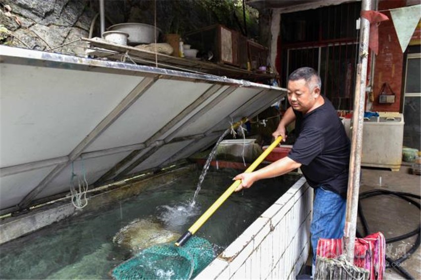 在各方幫扶下,2015年,朱國(guó)富借了10多萬(wàn)元,在家門(mén)口開(kāi)起了“黑灣魚(yú)莊”。農(nóng)家樂(lè)開(kāi)起來(lái)了,日子又開(kāi)始紅火起來(lái)。