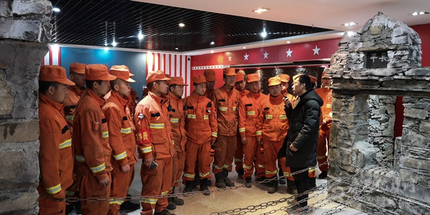 從火場歸來途中到紅軍長征紀念館接受紅色洗禮。