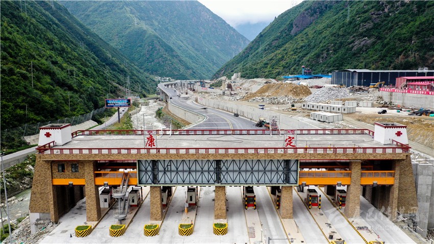 雅康高速康定小天都臨時收費站至建設(shè)中的康定菜園子收費站全景圖。
