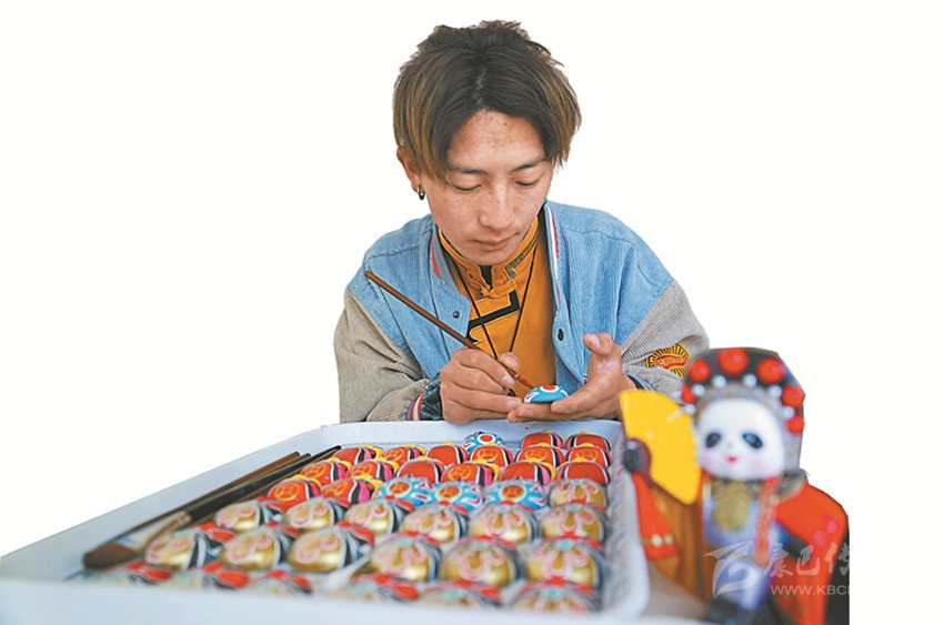 本著自主自愿的原則,教學(xué)班結(jié)束后,65名藏族青年主動(dòng)加入扶貧彩繪實(shí)訓(xùn)班,成為項(xiàng)目的第一批學(xué)員?!皩?shí)訓(xùn)期間不需要交任何費(fèi)用,還包吃住。我對(duì)畫京劇臉譜很有興趣,我們第一個(gè)月學(xué)習(xí)繪畫基本功,第二個(gè)月開始,根據(jù)成品質(zhì)量,就可以計(jì)件得酬勞,學(xué)習(xí)期間我每月能掙500多元?!壁雠f。