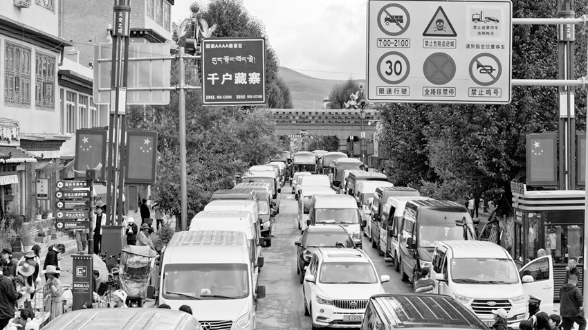 理塘千戶(hù)藏寨游客“爆棚”。