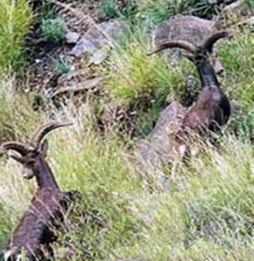 矮巖羊,偶蹄目???,生存在海拔2700-4000米灌叢、草甸、裸露巖石地帶,成年羊體重50-70公斤,體毛呈灰棕褐色,背腹交界處及四肢有明顯黑紋。