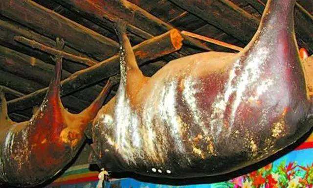 康南則用繩將豬勒死,讓血存于體內(nèi),然后用草點(diǎn)火去毛,于肛門處割一孔,取出內(nèi)臟,用干草或麥子等塞入豬腹內(nèi),用針縫合,縫口處用灶灰摻水?dāng)嚭铣珊芊猓瑨煸谑覂?nèi),待其發(fā)酵,產(chǎn)生臭味時(shí)食用,稱“臭豬肉”。