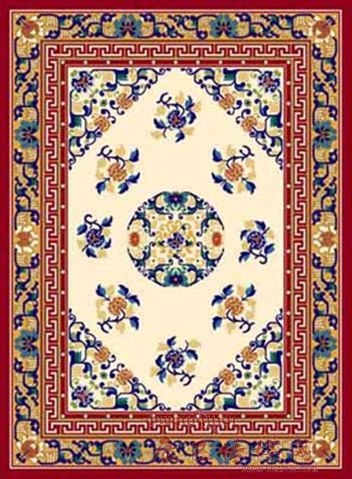 藏毯是植物染色,手工捻線,經(jīng)藝人的精心編織而成。它柔軟、耐用、美觀、大方,又有濃厚的民族特色,對生活在高寒地區(qū)的人們隔潮御寒、保溫取暖有重要作用。因些是長期在牧區(qū)生活所不可缺少的用品。它的品種,有地毯、炕毯、坐毯等。它是在藏族傳統(tǒng)藝術的基礎上,吸收、融合了漢族、印度和尼泊爾宗教藝人精華,形成具有自己獨特的藏族藝術風格的工藝美術品。 傳統(tǒng)藏毯的藝術風格,帶有濃厚的宗教色彩,如佛八寶、暗八仙、國王七寶等。佛八寶即法輪、法螺、寶傘、寶蓋、荷花、寶罐、雙魚、盤花;暗八仙屬漢道教文化即寶劍、寶葫蘆、漁鼓、陰陽板、仙笛、寶扇、花籃、荷花;國 王七寶也稱怵寶,屬印度佛教文化,即方勝、連環(huán)錢、犀角、令牌、象牙、珊瑚、珠寶。還有漢文化的琴棋書畫和梅蘭竹菊等。這些內(nèi)容既展示了人們的勤勞智慧和精神力量,也體現(xiàn)出人們對美好未來的期待、愿望和幻想。藏毯的表現(xiàn)形式以傳統(tǒng)式為主,還有自由式、龍鳳式及隨品種形式不同的構圖形式。色彩表現(xiàn)方面尤為豐富,顏色艷麗、純度高、對比強,色彩構圖穿插靈活,與藏族建筑彩畫的裝飾風格一脈相承。