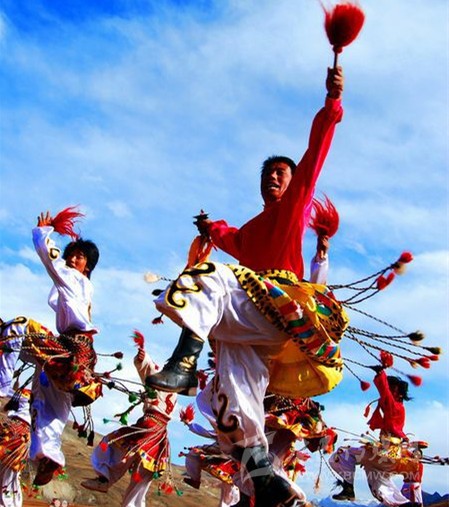 熱巴舞是由藏族"熱巴"藝人表演的一種舞蹈形式。熱巴是一種由賣藝為生的流浪藝人班子(一般以家庭為基本單位組成)表演的,以鈴鼓為主,融說(shuō)唱、諧(歌舞)、雜技、氣功、熱巴劇于一體的綜合性藝術(shù)。它有一套相對(duì)固定的程序,由12個(gè)節(jié)目組成,全套演出需要5個(gè)小時(shí)。